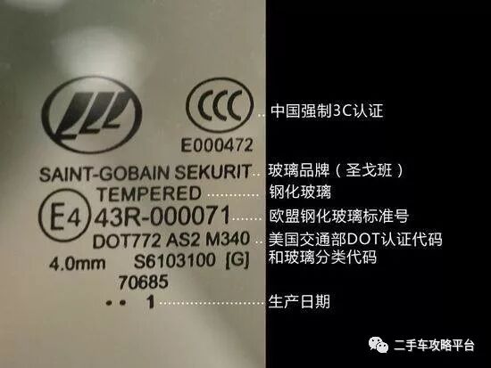 车子遭到了大的事故,基本上车玻璃就没有幸免于难的可能。如果车辆上的玻璃生产日期与车辆的出厂日期相差都很远,那就要留心对翻车事故的检查了。俗话说细节决定成败,二手车中的细节将决定着金钱和用车的心情,不要忽视了车玻璃上的细节。