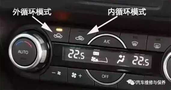 如下图所示 ,箭头所指的两个按键分别是内外循环按键。